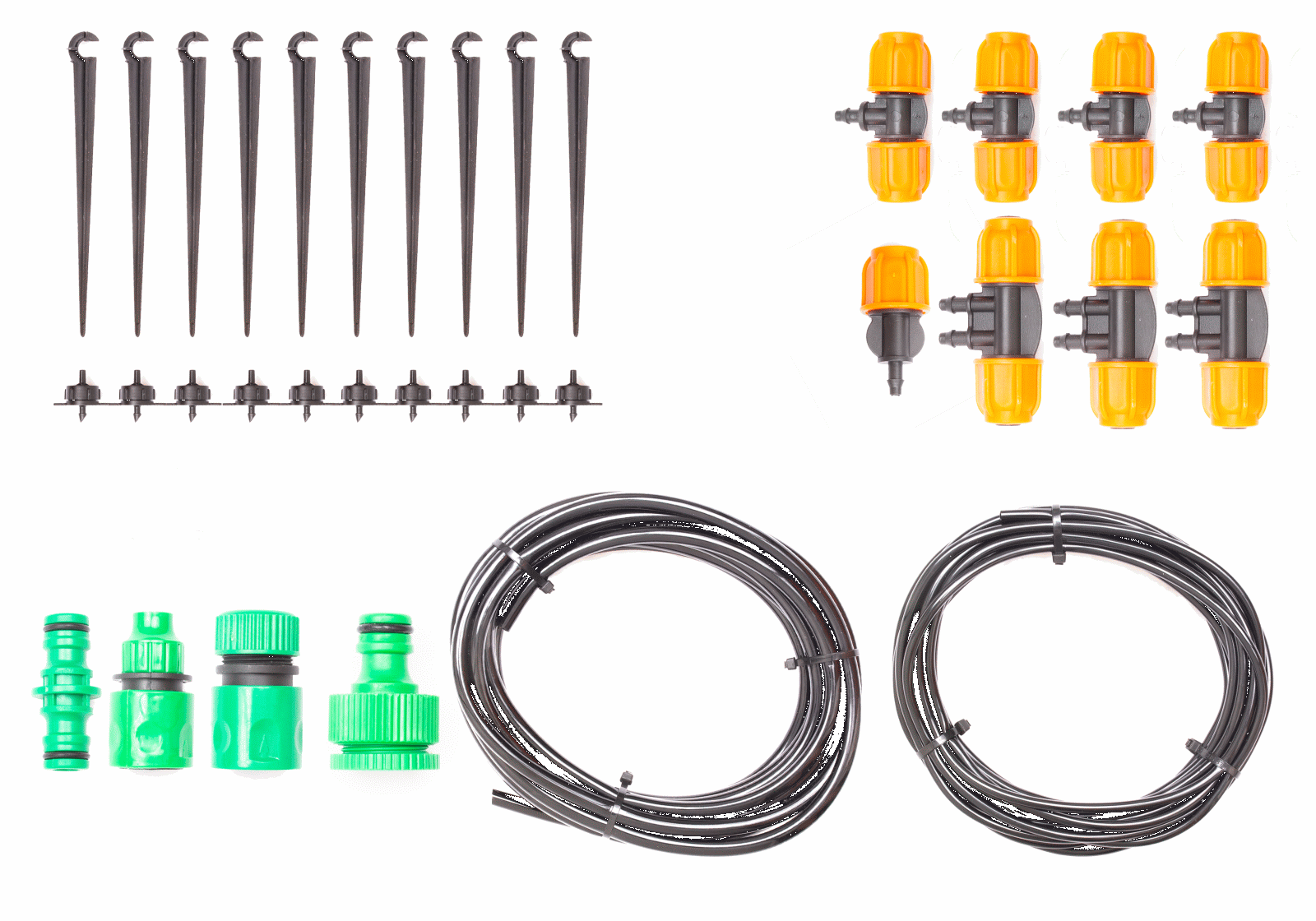 Set Aquanax AQQ003 je jednou ze základnějších variant našich setů. Hlavním prvkem v této sadě je regulovatelné kapátko Aquanax AQK001, které je vhodný pro zavlažování menších ploch záhonů či větších květináčů. Jeho velkou výhodou je snadná regulace průtoku vody. Kapátko je v sadě doplněno dostatečným množstvím spojek a držáků, aby se voda z dostala na to správné místo.