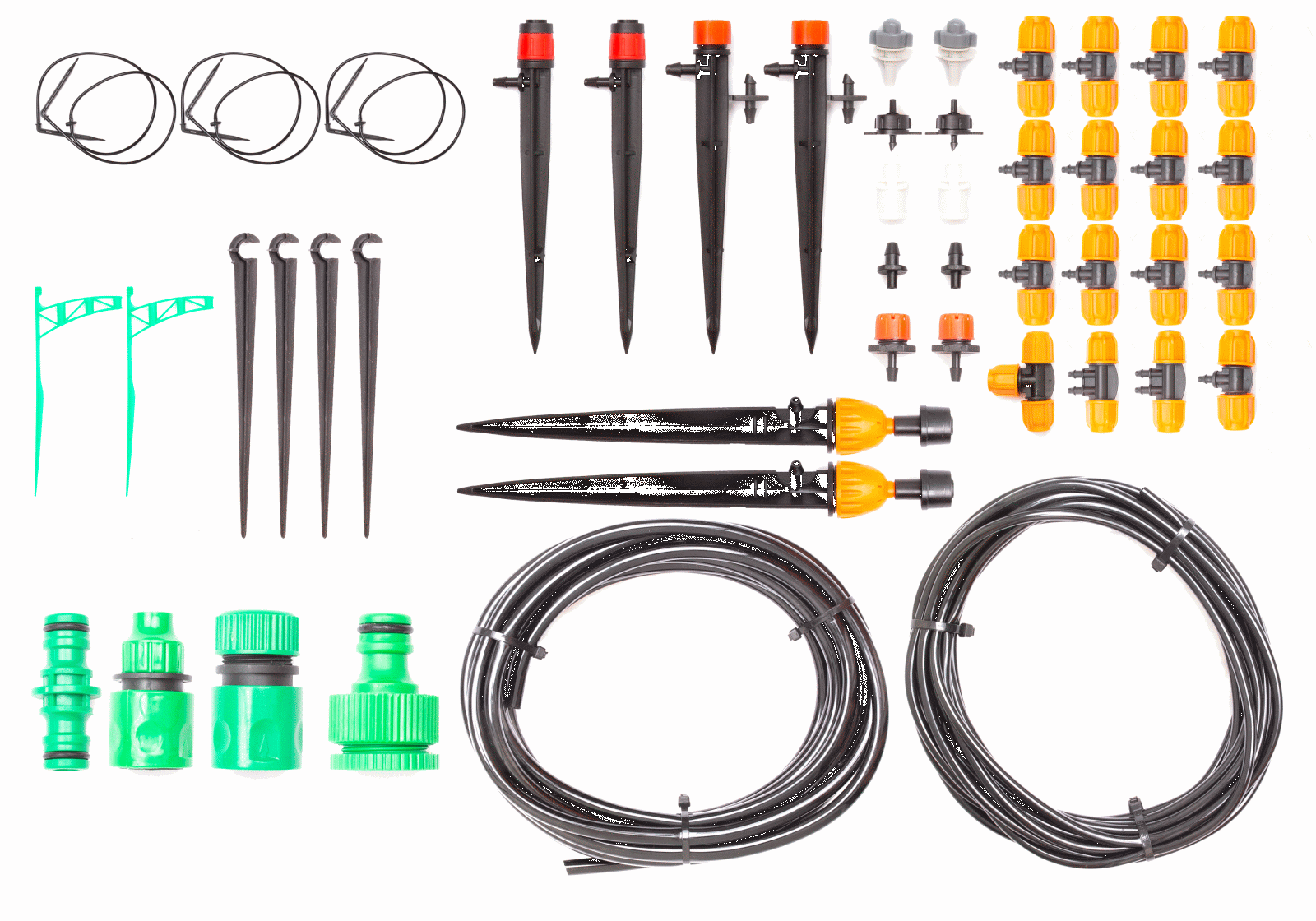 Celý závlahový systém Aquanax jsme se snažili udržet maximálně jednoduchý. Pokud se tedy rozhodnete pro kombinaci různých produktů, zajímá vás pouze jejich propojitelnost. Vše je navrženo tak, abyste vybírali maximálně ze dvou různých průměrů u produktů, které jednoduše propojujete spojovacími hadicemi. Díky systému EasyMount navíc můžete celý systém velmi snadno sestavit, rozebrat a tedy i opakovaně použít v nové konfiguraci.
